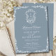 Dusty Blue Monogram Vintages Wappen Hochzeit Probe Dinner Einladungskarte. Feiern Sie Ihren besonderen Tag mit dieser eleganten und wunderschönen Einladungskarte für Ihre Hochzeit, um Ihren besondere Anlass zu verschönern. Alle Texte sind so vorbereitet, dass Sie sie einfach und schnell mit Ihren eigenen Details personalisieren können. Wenn Sie weitere Anpassungen oder Matching-Elemente benötigen, schicken Sie bitte eine E-Mail an alldaybreakfastzazzle@gmail.com - wir würden Liebe haben Ihnen zu helfen.