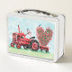 Vintages Altes Rotes Traktor Blumenherz Metall Brotdose