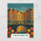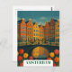 Erleben Sie die zeitlose Schönheit Amsterdams mit dieser Vintagen Postkarte. Das Design besticht durch einen friedlichen Kanal, der von historischen holländischen Stadthäusern gesäumt ist, und eine bezaubernde Brücke mit Fahrrädern und Blume. Diese Postkarte ist perfekt für Sammler oder Reisende geeignet und erinnert an den nostalgischen Charme klassischer europäischer Reisen.