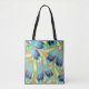 Schöne Tote-Taschen im Überdruck! Erhältlich in zwei Stilen und zwei Größen! Vintage Illustration Art Deko Jazz pochoir Wallpaper pattern von Eugene Alain Seguy, c 1929. Pochoir ist eine Schablonentechnik, die in surrealistischen Malereien üblich ist. Ein elegantes und elegantes Kubismus-Design mit hellblauen und lila Insekten mit Flügeln im Garten. Geometrische Formen und schöne coole Frühlingsfarben mit aquamarinen, lila und grünen Farbtönen. Ein modernes und raffiniertes Naturdesign.