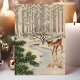 Vintages Baby Doe Deer in Forest Weihnachtskarte. Dieses Design zeigt ein Baby-Doe-Hirsch im Wald, das auf die Reflexion in der Bucht startet. Was für eine schöne Retro-Urlaubsszene! Personalisieren Sie dieses maßgeschneiderte Design mit Ihrem eigenen Gruß.