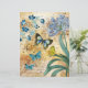 Vintage blaue Schmetterlinge mit Blume, Blattwerk und grunge ephemera Skripthintergrund.