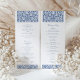Dieses wunderschön gestaltete Hochzeitsfeierprogramm ist ideal für Paare, die eine elegante, Vintag inspirierte Touch für ihren besonderen Tag suchen. Das Programm besticht durch seine feine Blumenmotive in Blau und Weiß, die an die klassische Vintage Kunst erinnern und Ihrem Hochzeitsdekor einen zeitlosen Charme verleihen. Das zarte Scrollwerk und das symmetrische Blumendesign verleihen dem Layout Eleganz und Anmut. Die Vorderseite hebt die Reihenfolge der Zeremonie hervor, während die Rückseite listet die Hochzeitsfeier, alle in einem raffinierten Serif-Schriftart. Dieses auf hochwertigem Cardstock gedruckte Programm besticht durch Eleganz und ist ein perfekter Sake für die Gäste.