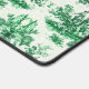 Elegante Vintage grüne Toile de jouy Monogram Mousepad. Schönes nahtloses Toile de jouy Muster Blau auf weißem Hintergrund. Die Toilabdrücke sind ein Alltagswut, ein elegantes und verziertes Vintages Jouy mit exotischen Damast-Mustern, einem lustigen Stil, der derzeit für Wohngestaltung, Kleidung, Handy und IPad Hüllen, Einladungen und vieles mehr anzieht. Das Design ist klassisch und zeitlos mit atemberaubender Farbe. Sie können alle Textfarben und Schriftart ändern, klicken Sie, um weiter unter dem Bereich der Textanpassung, der Sie in das Design-Tool führt, anzupassen. Ein einzigartiges Geschenk für Geburtstag, Urlaub und jeden besondere Anlass. Ob zum Valentinstag, zu Weihnachten oder als Geschenk im Allgemeinen - es ist eine tolle Geschenkidee