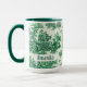 Elegante Vintage, grüne Toile de jouy Monogram Tasse. Schönes nahtloses Toile de jouy Muster Blau auf weißem Hintergrund. Die Toilabdrücke sind ein Alltagswut, ein elegantes und verziertes Vintages Jouy mit exotischen Damast-Mustern, einem lustigen Stil, der derzeit für Wohngestaltung, Kleidung, Handy und IPad Hüllen, Einladungen und vieles mehr anzieht. Das Design ist klassisch und zeitlos mit atemberaubender Farbe. Sie können alle Textfarben und Schriftart ändern, klicken Sie, um weiter unter dem Bereich der Textanpassung, der Sie in das Design-Tool führt, anzupassen. Ein einzigartiges Geschenk für Geburtstag, Urlaub und jeden besondere Anlass. Ob zum Valentinstag, zu Weihnachten oder als Geschenk im Allgemeinen - es ist eine tolle Geschenkidee