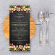 Die Vintage Blumenchalkboard-Hochzeitskollektion ist ein atemberaubendes Design mit hübschen Vintagen Blume auf einem Chalkboard-Effekt-Hintergrund. Diese Menükarten können für Ihren besondere Anlass personalisiert sein und würden das perfekte Menü für Hochzeiten, Brautparty, Verlobungen, Geburtstagspartys und vieles mehr machen.