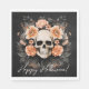 Dunkle und elegante Halloween-Servietten mit einem Vintagen Schädel gerahmt mit pfirsichfarbenen Rose und Herbstblättern. Ideal, um den Halloween-Partys, Ansammlungen oder Hochzeitsfeiern eine gotische und dennoch raffinierte Touch hinzuzufügen. Koordiniert wunderschön mit passenden Etiketten und Party-Vorräten.