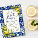 Feiern Sie die zukünftige Braut mit diesen Vintagen mediterranen blauen Fliesen und Zitrone inspiriert stilvollen Einladungen. Diese Vintage blaue Fliesen und Zitronen Bridal Dusche Einladung kann mit Ihren eigenen Details. Das Design zeichnet sich durch einen Vintag blauen Fliesenhintergrund mit realistischen Zitronengrafiken aus.