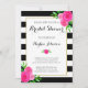 Dieses hübsche, elegante Design besticht durch handgemalte, rosa Aquarellfarben-Blume mit einem kontrastreichen Hintergrund aus schwarz-weiß Streifen. In der Mitte befindet sich ein vergoldeter weißer Bereich mit dem anpassbaren Text für Ihren besonderen Tag in beliebter, eleganter Typografie.