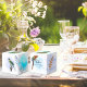 Vintage Vögel von D'Orbigny schmücken dieses Brautparty Gefälligkeitskasten mit aquamariner Schrift und zartem blauem Aquarell.