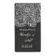 Vintager schwarzer Chalkboard-Hintergrund mit weißem Pisley Wedding Weinlabel perfekt für Ihre Calkboard-thematische Hochzeit.