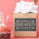 Vintager Stil Chalkboard Save the Date Einladung. Handgeschriebener Text mit niedlichen Pfeilen und rosa Herzen, der das Design prägt. Andere Farben und passende Produkte in meinem Shop erhältlich.