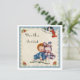 Vintager Ein Jahr alter Junge, der sich ein Bilderbuch aller seiner Freunde ansieht, die zu seiner ersten Geburtstagsparty eingeladen werden.