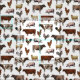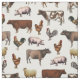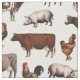 Wunderschönes Vintages Gewebe mit verschiedenen Nutztieren: Kühe, Schweine, Hähne und Schafe.