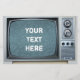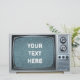 Foto eines Fernsehers aus den 80er Jahren mit statischem Bildschirm und anpassbarem Text. Hintergrundfarbe anpassbar.