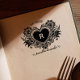 Vintages florales Herzmonogramm Ex libris Permastempel