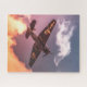 Das ist ein schönes Vintages Bombenflugzeug, das durch den Himmel fliegt. Die Wolken reflektieren die Sonne mit einer schönen orangefarbenen Farbe. Sie können den Propeller des Flugzeug und den Stern unter den Flügeln sehen. Das ist nur ein klassisches Bild, das Ihr Liebhaber oder Pilot in Ihrem Leben erleben wird.