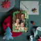 Ein Vintages Foto-Weihnachtsgeschenk mit einem Kiefernrahmen, der mit einem Rotspecht geschmückt ist. Sie können den Text leicht anpassen und das Foto durch Ihr eigenes ersetzen.