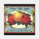 Vintage Illustration Obstkiste Kunstwerbung mit drei reifen Bio goldenen und roten Äpfeln, die frisch aus dem Obstgarten des Bauernhofs sind. Retro Werbung für Yakima Valley Äpfel von der Wapato Fruit and Cold Storage Company.