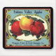 Vintage Illustration Obstkiste Kunstwerbung mit drei reifen Bio goldenen und roten Äpfeln, die frisch aus dem Obstgarten des Bauernhofs sind. Retro Werbung für Yakima Valley Äpfel von der Wapato Fruit and Cold Storage Company.