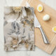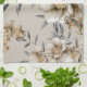 Ein Muster aus cremefarbenen, goldenen Blume vor grauem Hintergrund.