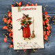 Vintages Halloween-Mädchen mit schwarzer Katze Karte