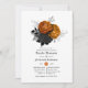 Vintag gebrannte Orange und schwarz geblümte Halloween thematische Hochzeitsessen Probe Einladung mit gotischem Akzent.