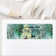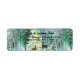 Weihnachts-Rückkehradresse Label Mit Reh draußen im Schnee Blick auf einen Weihnachtsbaum.