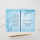 Vintage Wassergymnastikfeier und ein gefaltetes Party mit blühenden Schriftrollen in Blau auf Aqua- und Türkisgrunge-Hintergrund. Dieses elegante Vorlagendesign mit Vintagen Elementen eignet sich perfekt für die moderne Braut von heute. Es ist Teil einer Hochzeitskollektion oder Set und ist vollständig anpassbar. Ideal für eine Hochzeit im Sommer. Man muss es in der Mitte falten. Wählen Sie nur diesen Papierwert aus, da er sich gut faltet.