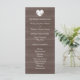 Vintage dunkelbraune Holzkörner Land schicke Hochzeitsvorlage. Shabby Stil Design mit romantischem rustikalem Herzen und stilvolle Skripttypografie. Hintergrund aus Holz mit weißem Text. Passen Sie an, was in Ihrem Programm enthalten sein soll. Trendy Heirat für Braut und Bräutigam. Geben Sie Namen, Datum, Ort, Reihenfolge der Zeremonie und Hochzeitsfeier ein. Teil eines wunderschönen Set zum Thema Sammlung mit Brautaccessoires und mehr.