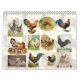 Vintage Hühnergrafiken schaffen eine einzigartige Collage, um Monat für Monat in diesem benutzerdefinierten Kalender zu genießen.