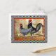 Vintage Abbildung eines Hahn- und Hühnchens im Barnyard, der nach Essen pickt.