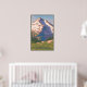 Dies ist eine von einer Reihe von Plakaten, die die majestätischen Gipfel der Kaskade-Range feiern. Der nordwestliche Künstler Mitch Frey zeichne Inspiration aus den Werbespots des Nationalparks in den 1930er-1940er Jahren. Es wird sehr darauf geachtet, jede Form und Farbe zu sortieren. Betrachtet man die koordinierte Palette, die eleganten Striche und den integrierten Text, erkennt der Betrachter, dass dies viel mehr ist als ein Massenbild mit austauschbaren Etiketten. Diese Szene ist ein Vergnügen, nah oder über den Raum zu sehen.