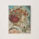 Die elegante blonde Dame aus dem Profil, die luxuriösen Schmuck und rote Rosen in ihren Haaren und einen Kreislauf aus rosa Rosen wie eine Aura um ihren Kopf hat, ist von einem Art Nouveau Poster des französischen Künstlers Louis Hingre (1832 - 1911), das jetzt im öffentlichen Bereich ist.