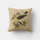 Ein elegantes Vintages Singvogel Throwkissen. Der Text sagt "Glauben, Hoffnung, Liebe". Der Vogel ist ein gelber Fink. Die Farben sind verschiedene Schatten der neutraler Person.