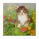 Keramik Tile mit einer lächelnden Katze! Diese lustige Katze spielt in einem Garten mit rosa, orangefarbenen, roten und blauen Blumen. Ein außergewöhnliches Geschenk für Katzenliebhaber und Viktorianische Kunstliebhaber!