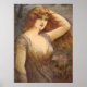 Ein hübsches Vintages Lady Poster mit einer hübschen Dame mit langfließendem Ingwer-Haar und seelenvollen Augen in Erdtönen Vintages Spitzenkleid oder Kleid.
