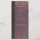 Mit dieser Karte können Sie auf der einen Seite Ihre Hochzeitsfeier und auf der anderen Ihr Hochzeitsfeierprogramm beschreiben. Passen Sie an, wenn Sie zusätzliche Textzeilen hinzufügen möchten. Mit einem Foto eines antiken Buches mit einem lila Cover.