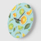 Vintages Limones Lemon Blue Pattern Große Wanduhr