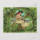Vintages Mädchen mit Kleeblättern Postkarte