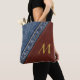 Denim und Leder erlöschen nie von der Art. Der Blick des Denims nähte zum weichen Leder diagonal über dem Entwurf. Die kundengerechte Monogramminitiale hat einen Maßblick 3.