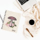 Das hübsche Vintage Look Bullet Journal Design zeichnet sich durch einen rosa gefärbten Pilz mit rosa Blumen und üppig grüne Blätter auf Vintag gestreiftem Hintergrund aus. Personalisieren Sie Ihren Planer mit Monogramm oder Namen im hübschen Skript-Schriftart