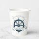 Chic sommerliches Party Papier Tasse für Ihre Strandkreuzfahrt auf dem Ozean mit einem marineblauen Bootslenkrad. Dieses nautische Design eignet sich perfekt für die gehobene, familiäre Wiedersehen-Dekoration für Ihren besonderen Aufenthalt. Personalisieren Sie mit Ihrem Nachnamen und Jahr.