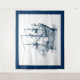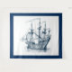 Elegant marineblau Vintage Windsegler-Darstellung auf weißer Seite. Blaue optionale Grenze.