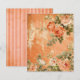 Ein doppelseitiges Scrapbook und Zeitschriftenpapier mit einem rustikalen orangefarbenen Streifen auf der einen Seite und einem orangefarbenen Blumendruck auf der anderen Seite.