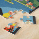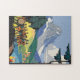 Dieses coole Puzzle basiert auf einem Vintagen österreichischen Poster, das eine Gruppe marschierender Musiker mit See und Bergen im Hintergrund zeigt.