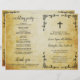 Dieses Hochzeitsprogramm ist einfach, aber schön. Es ist für eine katholische Zeremonie konzipiert und zeichnet sich durch ein Vintages Design mit einem Imitat Pergament-Hintergrund, eine lakate Skriptkalligraphie, ein Kruzifix oder Kreuz und elegante Rollen in den Ecken aus. Das Innere hat den Raum für alle Details der Zeremonie erweitert, während der Rücken Informationen über die Hochzeitsfeier zusammen mit einem kurzen Dankeschön-Hinweis hat. Eine schöne Art, Ihre Gäste zu empfangen und es ihnen leicht zu machen, zusammen mit der Zeremonie zu folgen.