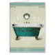 © Sue Schlabach/wildes Apple. Das Bild zeigt ein Vintages Pariser Bad in den weißen und blauen Farben. Eine blaue und weiße Badewanne, ein altmodischer Spiegel und eine hellblaue Grenze können auf dem Bild gesehen werden.
