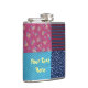 Die originelle Stoffpatchwork-Konstruktion auf diesem ungewöhnlichen, individuell anpassbaren angesagten Kolben hat ein sehr traditionelles, handgefertigtes Aussehen, das Patchwork-Bild wurde von einem Foto eines originalen handgewirkten Musters aufgenommen. Das originelle Stück farbenfrohe Nähte wurde fotografiert, um es als natürlich und "vorgeliebt" zu zeigen, kann man sogar ein paar Tierhaare sehen! Und es wird streunende Fäden und Falten geben, das alles macht das natürliche Shabby Chic eines beliebten und sonderbaren Flickwerks aus. Das Patchwork-Bild verleiht diesem lustigen angesagten Kolben ein Vintages Aussehen. Dies ist eine anpassbare angesagte Flasche, die Sie mit Ihrem eigenen Text personalisieren können. Ein großartiges Geschenk für jeden.