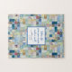 Personalisieren Sie dieses bunte Vintage Patchwork gemusterte Puzzle in vielen blauen Texturen mit Ihrem eigenen Text für ein einzigartiges Geschenk. Süße Ware für Quilter, Nahtlose oder für jeden, der einen Geschmack für gemütliche rustikale Wohngestaltung hat.